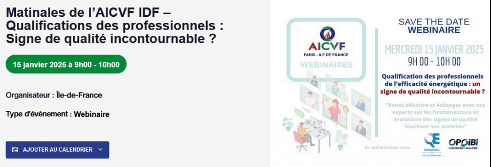 Seminario gratuito sobre la cualificación de los profesionales en eficiencia energética el miércoles 15 de enero a las 9 horas, con la intervención de OPQIBI.